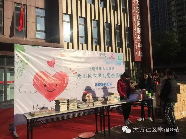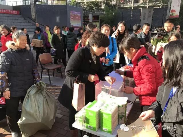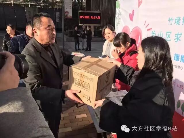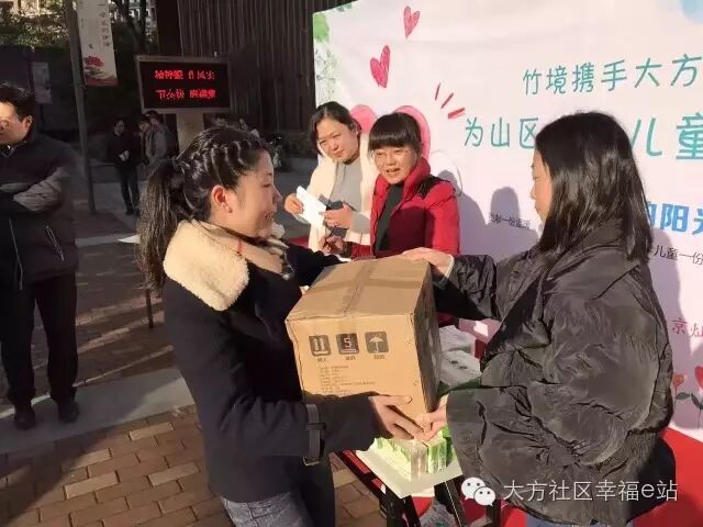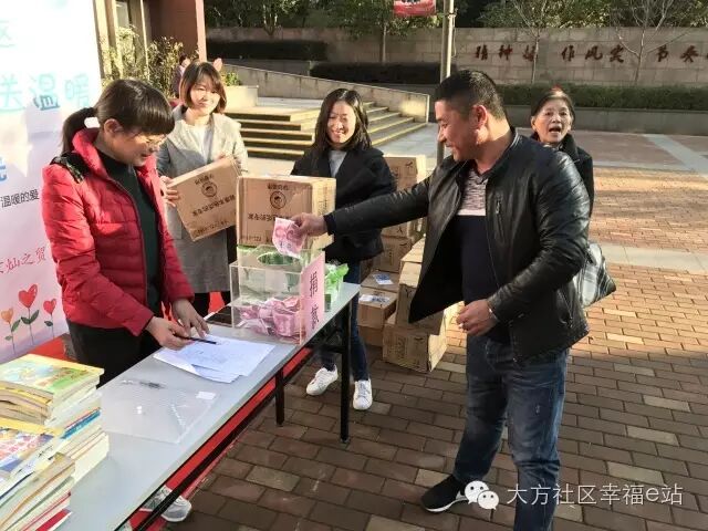 现场居民和社区工作人员纷纷献出自己的爱心,为山区的孩子送去温暖。