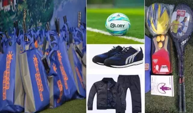 “筑梦体育包”包括足球、篮球、乒乓球、羽毛球运动套装等