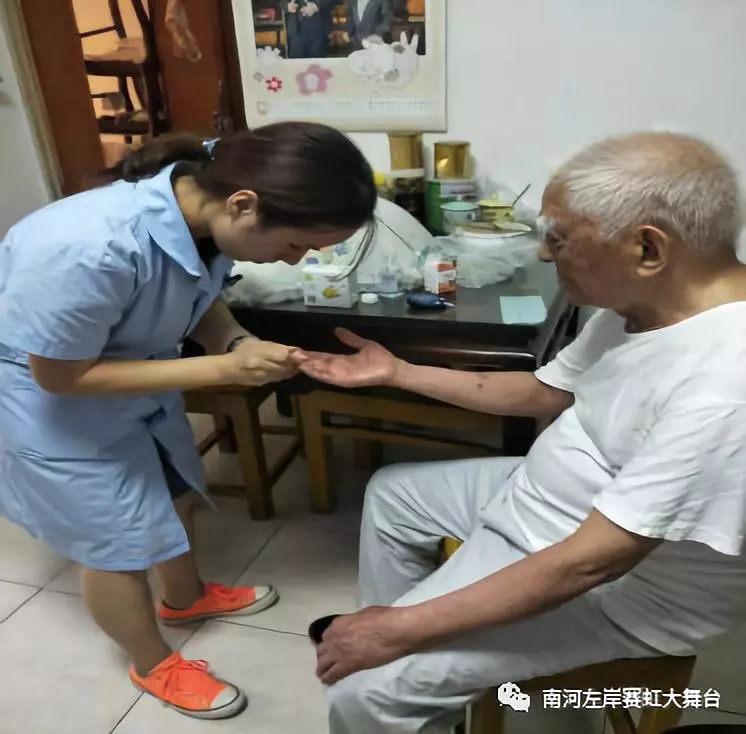 80多岁的杨春景老奶奶非常热情的招呼工作人员进家门说“这么热的天你们太辛苦!,我本来血糖血压就高,家里面有3个血压计我也不会量,儿女平时也没有时间,你们能上门来我真是太感谢了!”赛虹桥社区卫生服务中心的工作人员已多次走进社区为老人们服务,受益人群近百人。