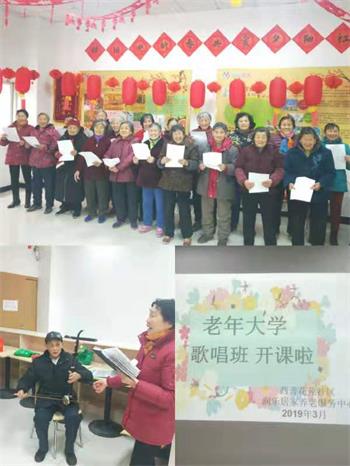 3月6日上午,西善花苑老年活动中心歌声嘹亮,热闹非凡,我们老年大学---歌唱班开课啦。今天是首次开课,就吸引了西善花苑社区二十多位老年人参与进来,老人们个个热情高涨,我们的歌唱爱好者沈叔叔,带领着大家唱那些年代的经典歌曲《东方红》、《唱支山歌给党听》等,今年正值新中国成立70周年,一首《今天是你的生日》把现场气氛推向了高潮,80多岁的陈秀珍老人激动地说:“这些老歌我们都会唱一点,现在有个老师带着我们唱,我们真的很开心”。首次开课,反响热烈。接下来我们将邀请更多的老人加入到我们的歌唱班,给老年人搭建一个沟通交流,展示才艺的平台,让老人的晚年生活更加丰富多彩。
