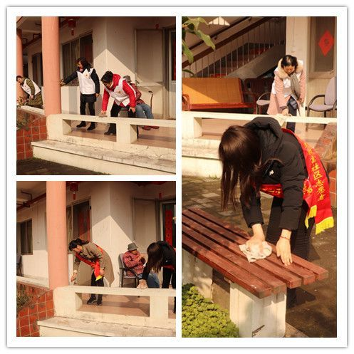 小菜园里干的热热闹闹,另一组在生活区的小伙伴们也在努力干活呢!扫地、擦桌椅、捡垃圾,忙的不亦乐乎,志愿者们的到来让爷爷奶奶们很开心,脸上露出了慈祥的笑容,笑呵呵的和志愿者们聊着天。