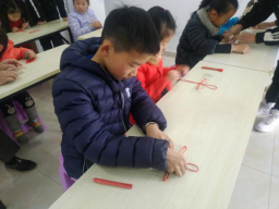 活动现场,孩子们在老师的带领下,首先通过课件学习了解中国结的由来、种类、用途等方面知识。随后一边制作一边讲解:先是打金刚结,然后盘线,用珍珠针固定,结成一个饼状,最后收线。孩子们在一旁观察着打结的方法,一边动起手来制作,专注而认真。整个过程,青少年们一边制作一边与老师进行沟通,气氛十分热烈。经过一个多小时的创作,一个个鲜红、喜庆的“中国结”就在孩子们灵巧的小手中诞生了。本次活动激发了孩子们的自信心,在掌声中,孩子们还分享了自己的制作方法。