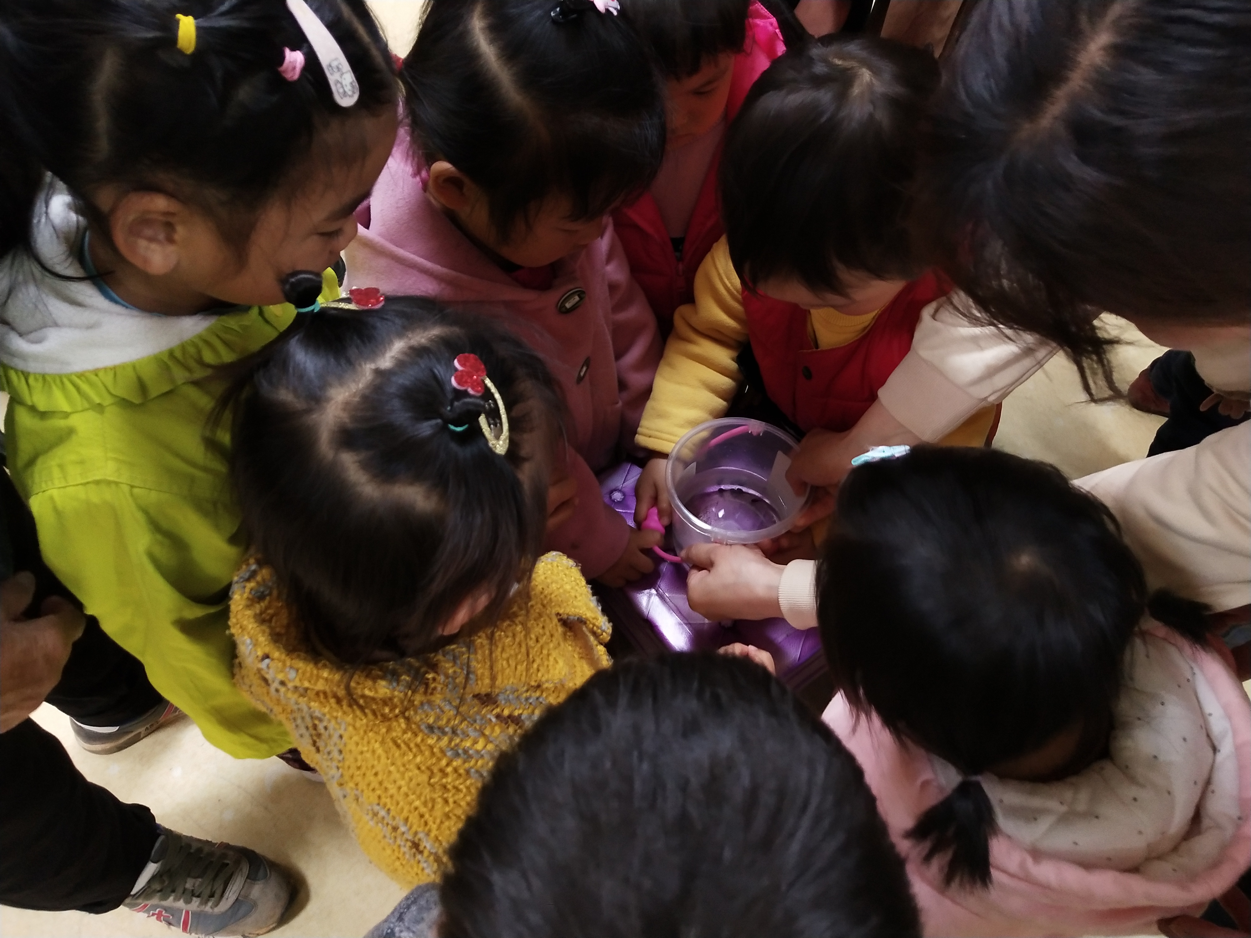 这次绘本阅读活动,采取多媒体的方式,孩子们表现出了浓厚的兴趣。绘本结束后,我们还组织宝宝们现场观察了小蝌蚪,跟小朋友们讲述蝌蚪的成长过程及青蛙的好处,倡导孩子们要爱护小动物,与小动物做朋友。春天是美好的,希望我们的小朋友能更多的接触大自然,接触春天,不负美好时光。