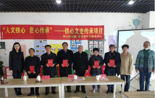 本次活动有四项议程:一是由艾主任致辞,宣布铁心文史传承项目正式启动;二是郝主任、张书记为“人文铁心 匠心传承”项目揭牌;三是郝主任、张书记、艾主任为五老讲师团颁发聘书;四是由五老讲师团杨建华老师讲授“史说铁心”第一课,杨老师用自己的方式讲述了铁心桥的由来,激发了现场青少年对家乡浓厚的兴趣。