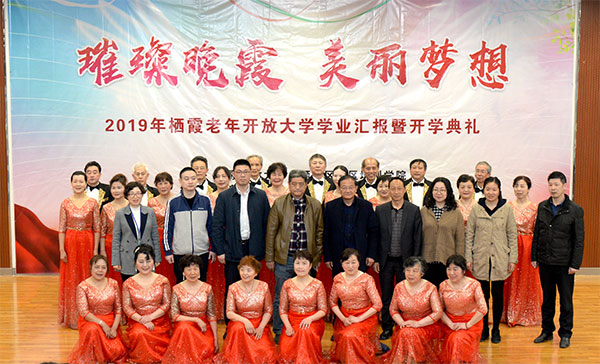 3月27日下午,栖霞老年开放大学又迎来了每年一度的开学典礼暨学业汇报。参加了这次活动的有栖霞区教育局职社科科长王德文,栖霞开放大学校长王广胜,栖霞开放大学副校长谷雨娥,迈皋桥街道社事科科长姚垚,迈皋桥各社区领导,老年开放大学所有老师和学员,以及附近部分社区居民。