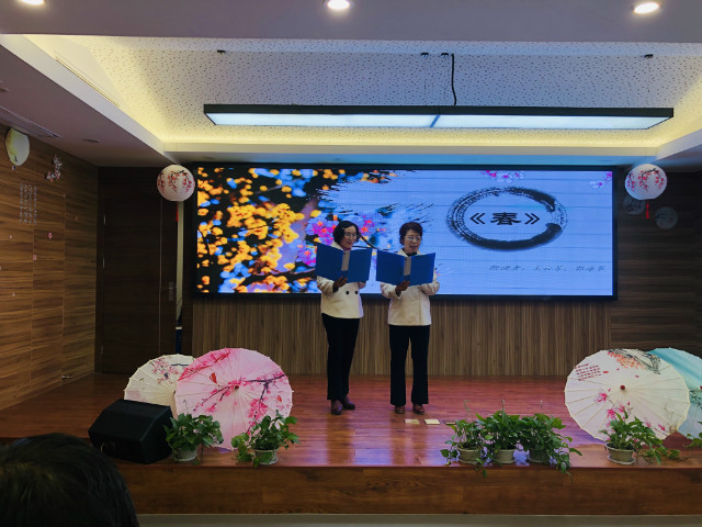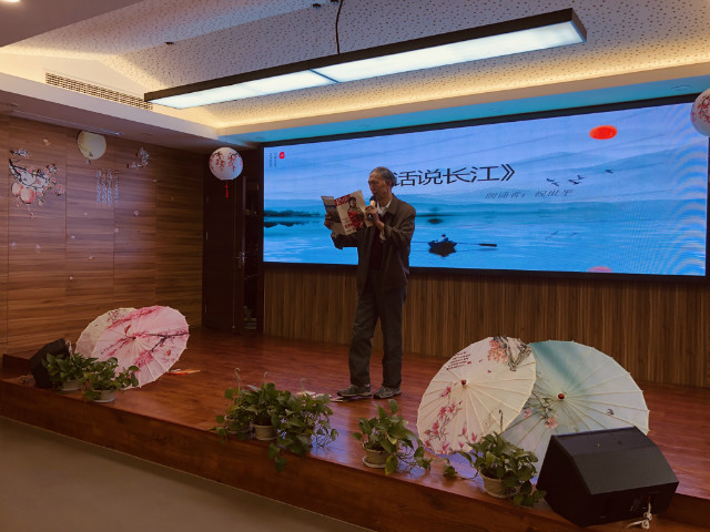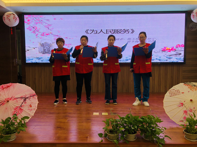 春秋时代的晋师旷说:“老而好学,如炳烛之明”,离退休后虽然没有工作任务逼迫,但同样要求人们活到老,学到老,油坊社区就有这样一批退休老人。其中来自七彩星城小区、年过耄耋的祝世平老先生就是让人敬佩的典范,在舞台上他的双腿因年迈不住的颤抖,声音沙哑低沉的诵读着《话说长江》,读罢意犹未尽,舞台上又响起嘹亮的歌声“一条大河波浪宽 风吹稻花香两岸.....”,在顾主席和文站长的带领下,引发了全场大合唱,场面温馨感人。在退休居民群体中还有这样一群人,他们日常穿梭在楼栋之间,记录着社情民意,维护一方平安,这群人就是网格员,由网格员代表带来的《为人民服务》,让观众深刻感受到她们在平常志愿工作中不怕辛苦、为大众服务的情怀。