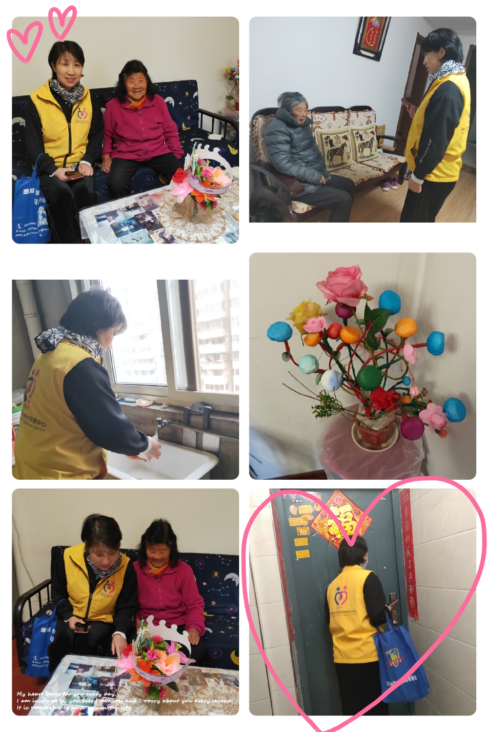 西善花苑润乐养老服务为了及时掌握了解西善花苑社区高龄独居老人的日常所需和健康状况,每周我们都会上门看望独居老人,今天上午,当我们推开七十多岁的聋哑独居老人刘年年的家门时,老人的嘴角乐开了花,虽然不会说话,但是老人的手一直给我们比划着,和我们分享着她的手工艺品和老照片等等,一切尽在不言中。经常性的探望,让80多岁的朱春红老人也记住了我们,老人告诉我们除了下雨天出不了门,平常他都喜欢外出走走,我们嘱咐老人游玩也要注意安全。关爱独居老人,我们一直在路上,也希望通过我们的日常探访,陪老人们聊会儿天,为他们提供力所能及的帮助,给他们孤独的内心带来阳光般的温暖。