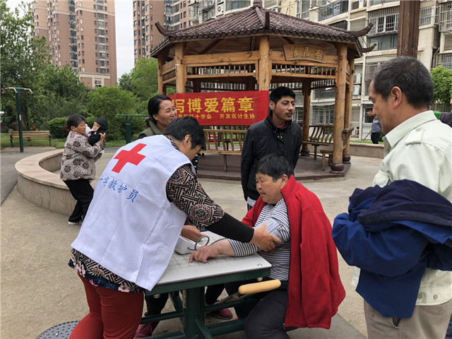 为了更大程度的在社区普及红十字会宣扬助人精神,以科学发展观为统领,认真贯彻落实红十字会各项工作要求,大力弘扬红十字会精神,4月26号上午,天保社区悦心居家养老服务中心、雨花开发区红十字会、开发区计生协志愿者们,走进南奥新居为辖区内老人们解读了红十字的意义、由来,普法宣传活动营造了良好的宣传氛围,增进了社区广大群众对红十字法和相关知识的了解和认知,也进一步弘扬了“人道、博爱、奉献”红十字会精神。最后红会志愿者给居民们测量了血压,普及了预防高血压的相关知识。
