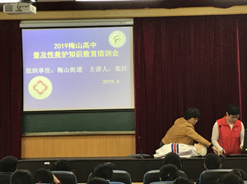 2019年4月28日下午2:45,梅山街道梅欣社区联合南京市红十字会在梅山高级中学多媒体教室举办了“普及性救护培训”知识讲座。