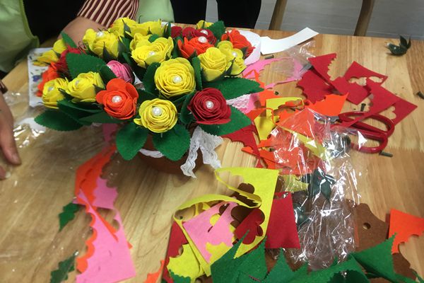 活动中,老师给妈妈们讲解“不织布玫瑰花”的制作过程,一边讲,一边示范。妈妈们学的仔细认真,各个步骤都一丝不苟,力求完美。制作完成后,妈妈们欣赏着自己的作品,脸上露出了灿烂的笑容。大家纷纷拍照留念,并说这是给自己最好的母亲节礼物,希望我们社区老年大学,多组织这样的活动,陶冶情操,愉悦心情,丰富业余生活。