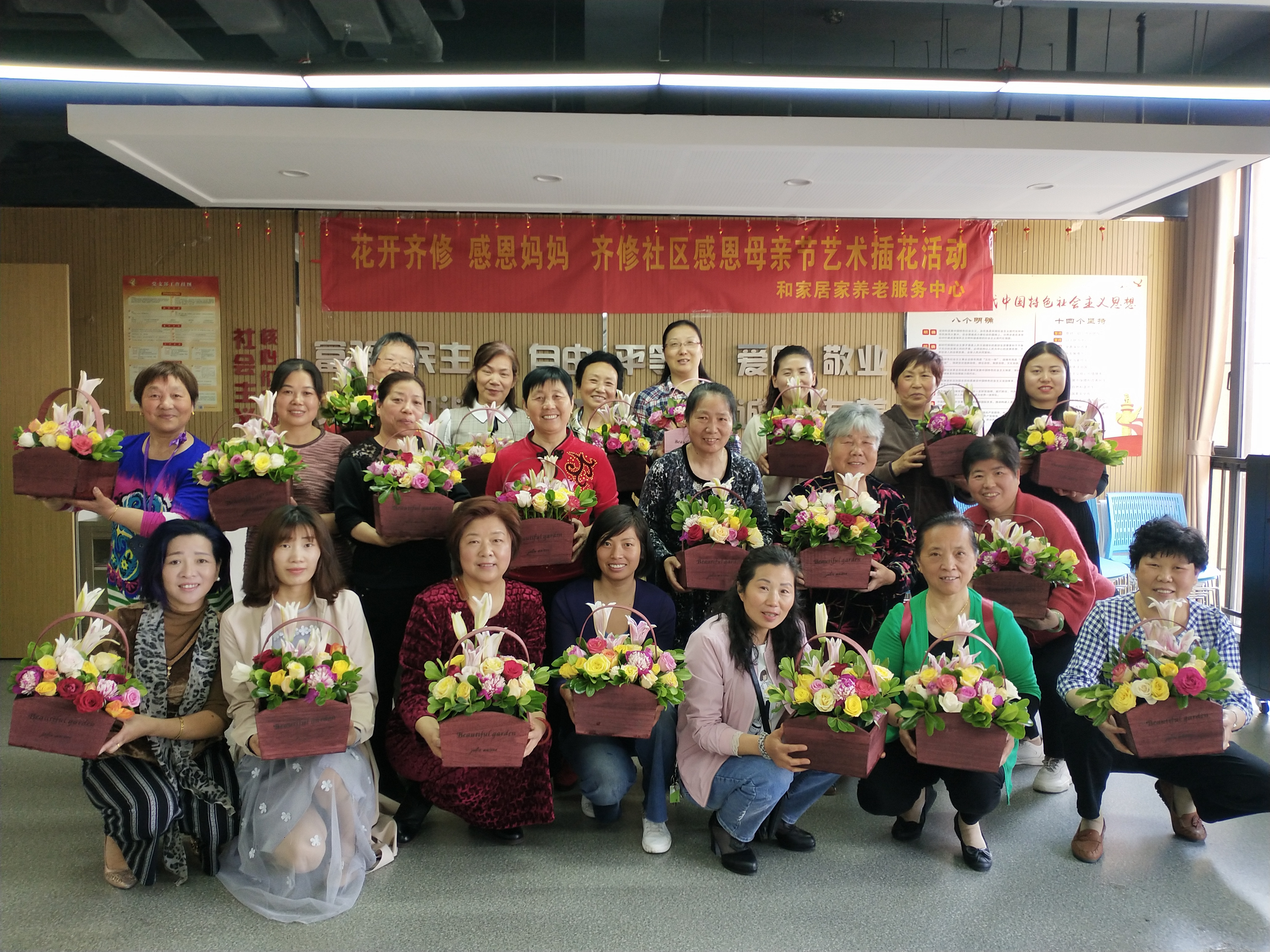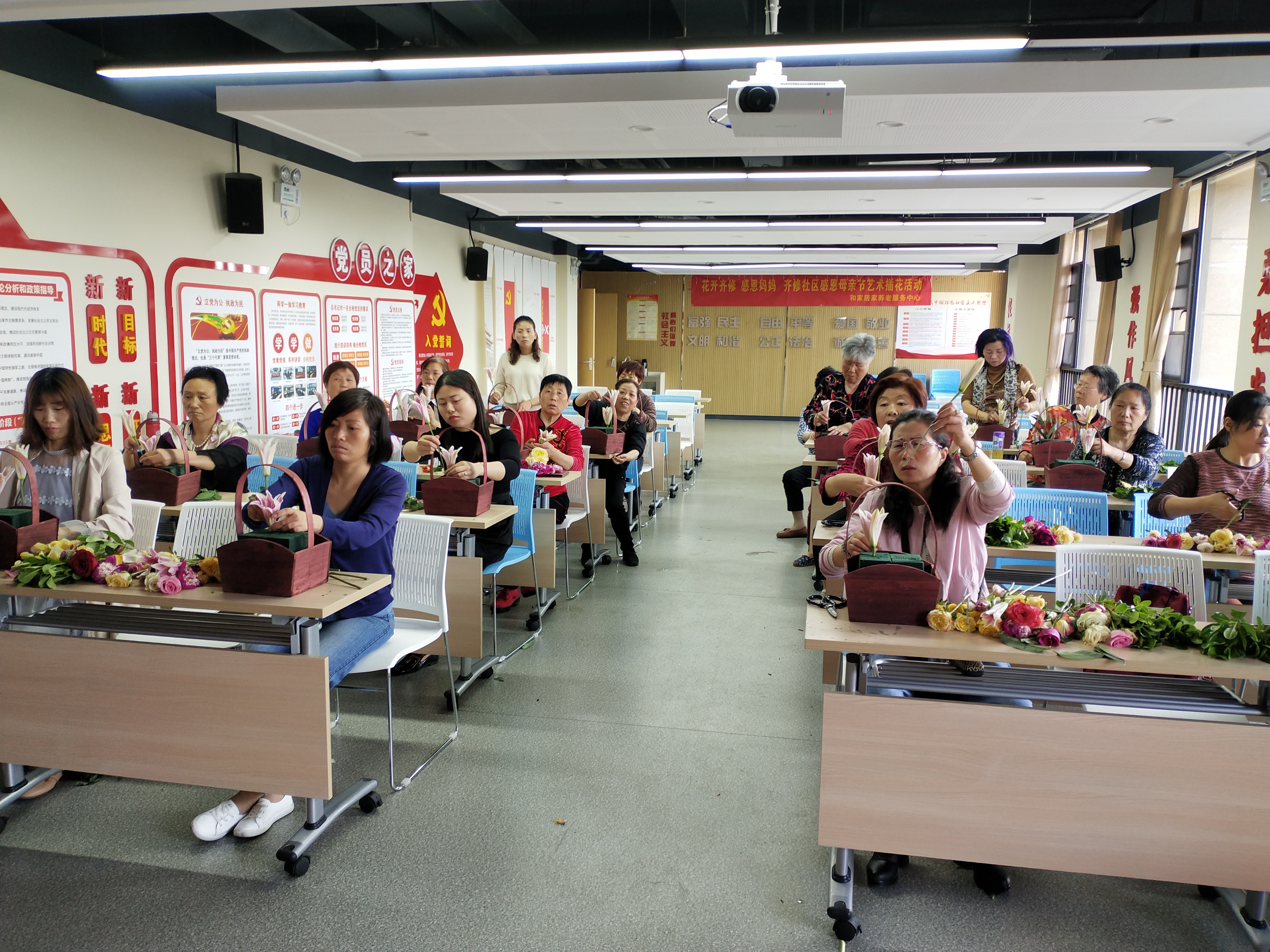 为了迎接母亲节的到来,5月10日,齐修社区以“花开齐修 感恩妈妈”为主题,组织辖区20位妈妈,开展了母亲节插花活动,让大家体验插花这门高雅艺术,向母亲节献礼,传递节日的祝福。