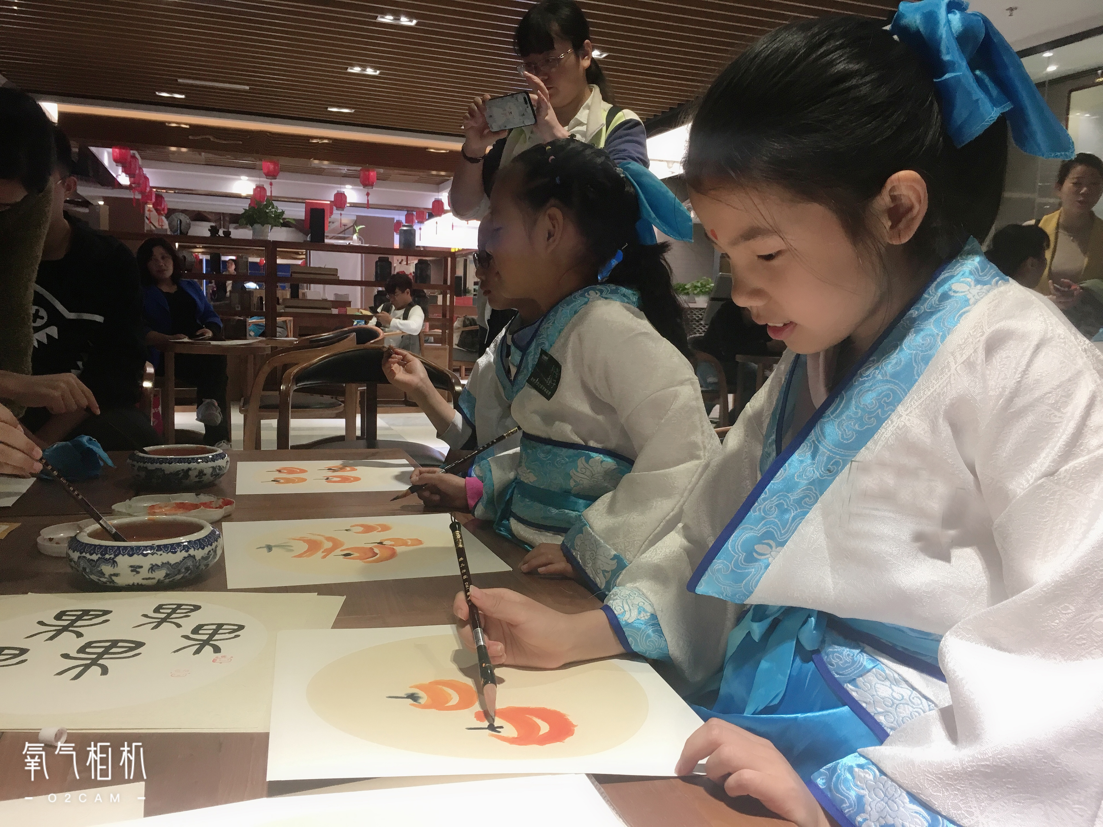 中国古人有“八雅”,“琴棋书画、诗酒茶花”。活动当天,小朋友根据自己的兴趣分组,在老师指引下,充分感受到了古人“八雅”。随后,老师向同学们介绍经典国画作品,并以“柿子熟了”为主题手把手进行国画教学。宝贝们认真地进行创作。“先画叶子、再画果实”,看着纸上“熟透了”的柿子,小学生们脸上都洋溢着自豪的笑容。