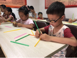 活动开始,来自南京小青柠青少年服务中心的徐老师为大家强调了环境保护的重要性,并就日常垃圾分类常识进行了普及。我们平时认为垃圾就是无用而有害的,其实垃圾是放错地方的资源,如何让垃圾再利用,现场的孩子们和老师开展了一次垃圾分类环保知识问答,更加深刻的让环保理念深入人心。紧接着,徐老师拿出了今天手工活动的材料,孩子们看着材料露出了疑惑的表情,这不是我们日常生活中常见的吸管吗?这个吸管和我们今天的手工风车有什么关系吗?一个个疑问涌上孩子心头。没错,今天活动的主角就是这看似普通的吸管,老师用那魔术师般的巧手,一边讲解一边制作,孩子们听的入神,看看这一个个普通的吸管如何能变身彩色风车。原来这吸管经过裁剪,规则的搭建和有技巧的粘贴,竟然神奇的变成了吸管彩色风车。