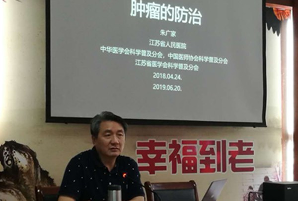 一年一度芳菲尽,红了杨梅黄了杏,时光飞逝,悄然无声,金陵六月迎来了梅雨纷纷的季节。近日梅姑娘好似不近人情,时而暴雨如注,时而细雨蒙蒙,阴森潮湿,天气使人心情烦闷。2019年6月20日虽然天公不作美,阴雨绵绵,但是友友们却准时来到雨花新村金色家园来聆听,省人民医院朱家广主任科普关于肿瘤方面的知识。朱广家主任是中华医学会科普分会常务委员 ,中国健康教育协会医院分会常务委员,全国相约健康社区行巡讲专家,江苏省健康教育协会副秘书长。省人民医院主任医士。