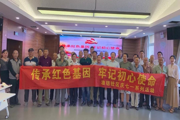 油坊社区举办了一场特别的“红色生日会”。邀请了与共和国同龄的70周岁党员和今年新入党的共建单位地铁青年党员一起庆生。