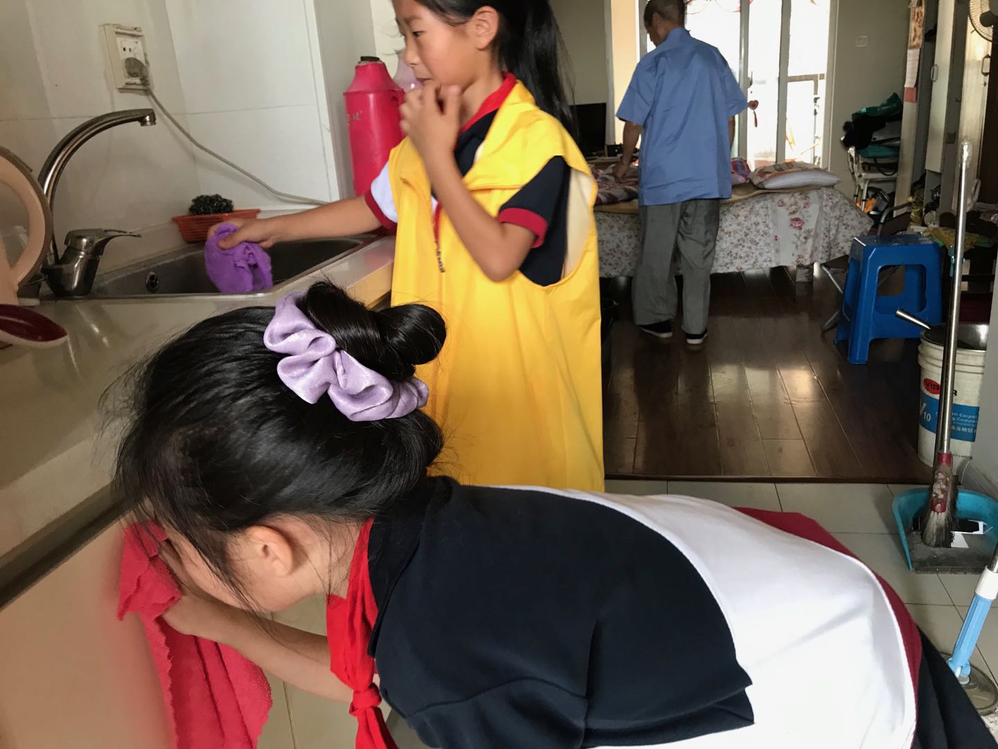 敬老从小做起,助老从我做起。2019年7月3日至4日,齐修社区居家养老服务中心工作人员和志愿者带领岱山实验小学的20位小学生和他们的家长,走进辖区内10位困难独居的无子女老人家里,在工作人员和志愿者的指导下给老人量血压,帮老人家里打扫卫生,陪老人聊天。小天使们的到来给老人带来了不少的欢乐,老人们纷纷给这些可爱的孩子们点赞,炎热的暑期中,小学生们的爱心行动还在继续。