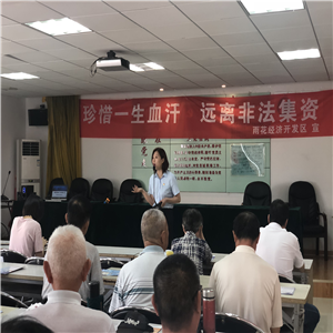 为了防范金融欺诈,提高群众对金融诈骗违法行为的防范意识和应对能力,引导普通群众特别是老年居民理性投资,重视和防范非法集资,树立科学投资理财观念。7月6日上午,金叶花园筹备办党支部联合雨花开发区建设银行党支部在金叶花园筹备办活动室举办了一场主题为“珍惜一生血汗,远离非法集资”的区域共建金融知识讲座活动。活动特邀建设银行吴行长亲临授课,吸引了50余名党员和居民共同参与。