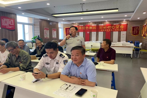 社区在党群服务中心举办了一场“追忆旧时光”的主题活动。活动开场,老、中、青三位党员代表分享了他们的入党经历和成长故事。他们在工作中的艰苦奋斗历程和对党的热爱,打动了在场的所有人,其中老党员贾安居的分享最让人印象深刻。