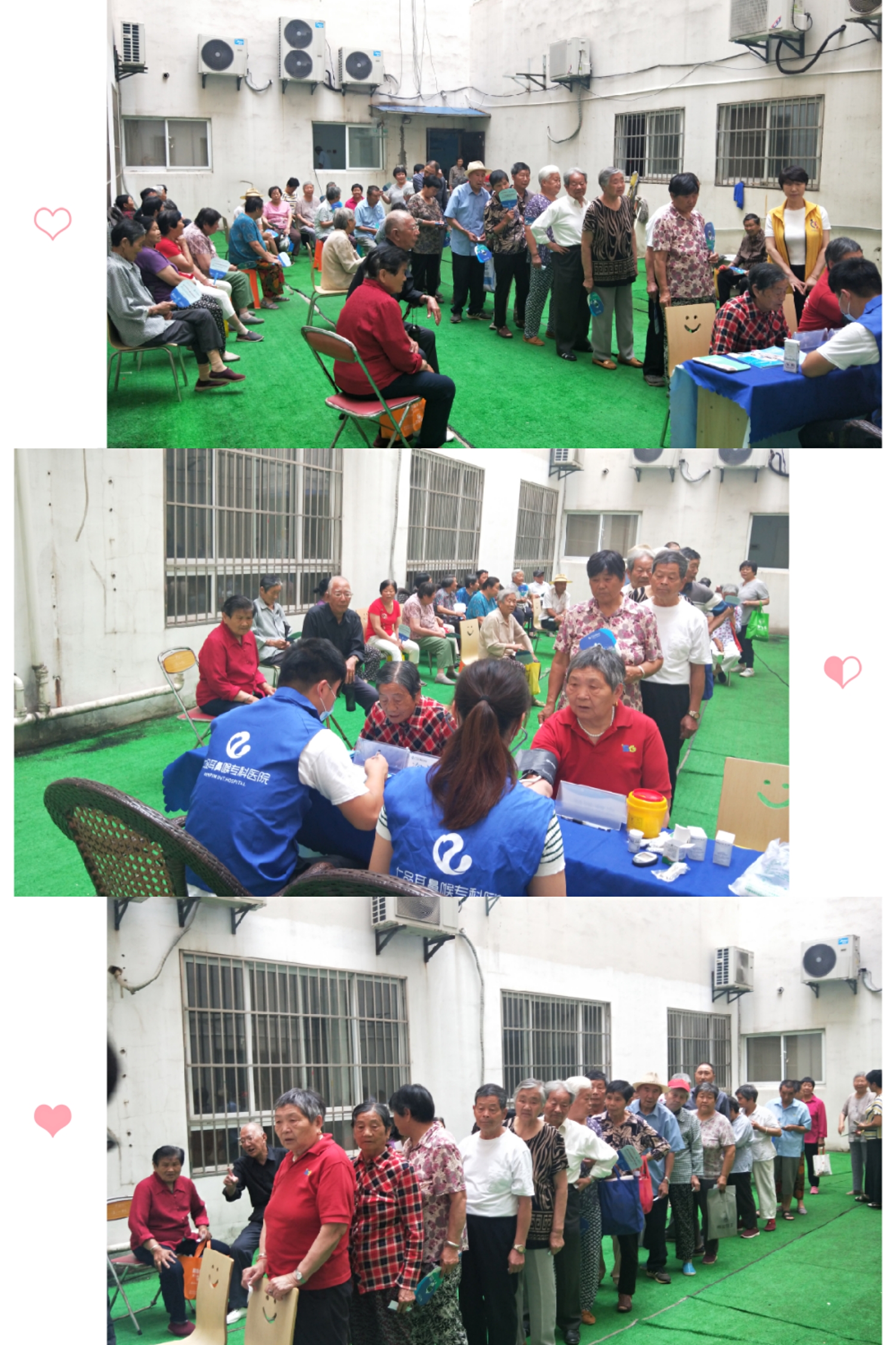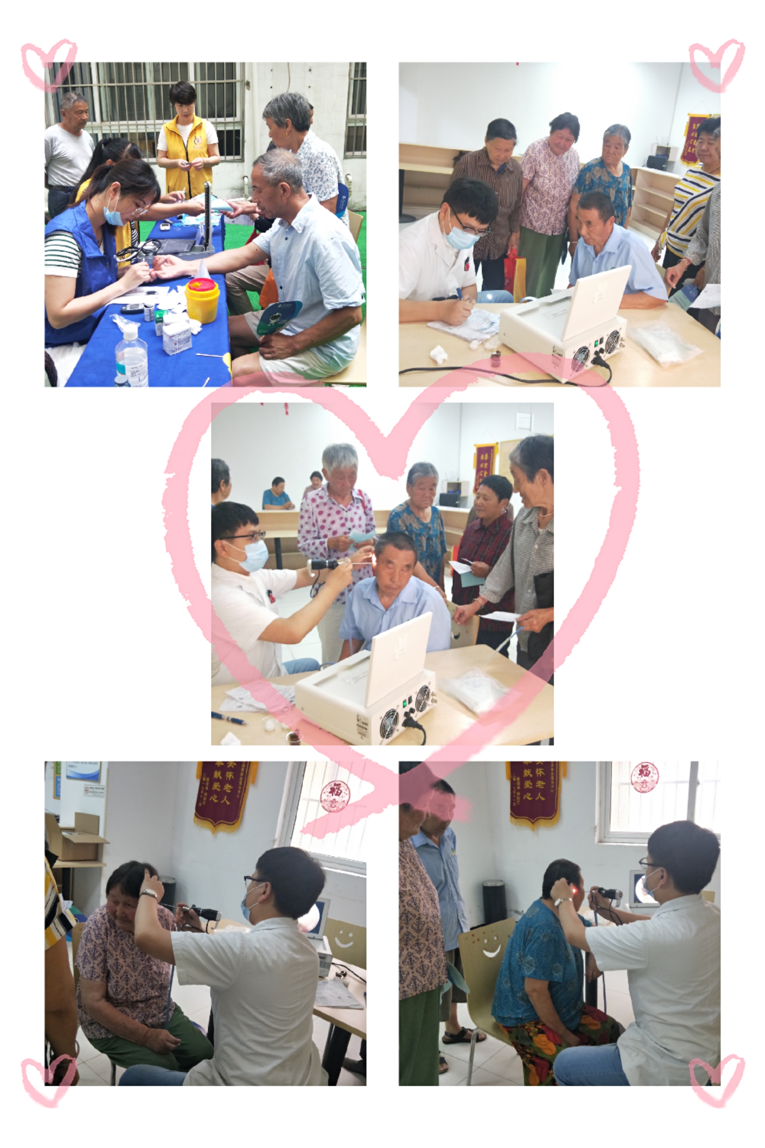 7月12日早上,我们联合南京仁品耳鼻喉科医院为西善花苑辖区内的老人开展了一场爱心义诊进社区的活动,经过前几天的宣传,此次前来参加活动的老人有一百余人,活动现场,医生为前来就诊的老人进行认真细致的检查,耐心询问他们的日常习惯及身体状况,并针对耳鼻喉病情做出专业性诊断和建议,尽心尽责为老人答疑解忧,同时为老人讲解常见疾病的预防和治疗方法。此次活动使大家了解到自身健康状况,倡导了健康生活方式,受到老人一致好评。我们将继续搭建为老公益服务平台,将更多便民服务送到家门口,让老人能够享受更多的便利。