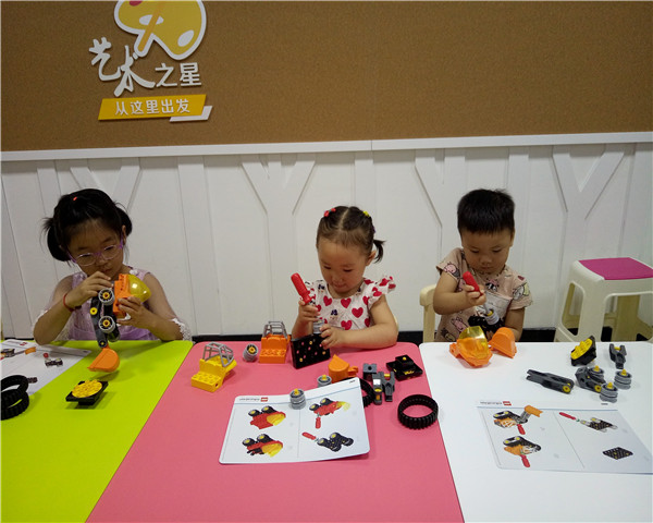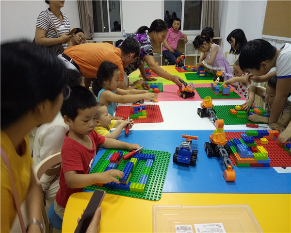 今天到场的是专业的乐高老师,老师先是与小朋友们问好,便开始了今天的课程,因为是手工课,需要讲解手工制作的流程和步骤,小朋友们认真的听讲,好奇地问这问那,老师讲解完,便迫不及待的开始了自己的手工制作,老师在旁边认真指导。