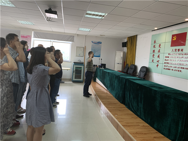 温誓词,铭记身份使命。入党誓词的宣誓仪式,就是一场寻找初心之旅。党员们在鲜红的党旗下举起右拳,在党支部书记崔林的带领下,全体党员重温入党誓词。在鲜艳的党旗下接受心灵的净化和洗礼,牢记身为一名共产党员肩负的责任和历史使命。