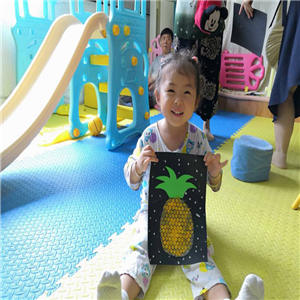 热心的志愿者妈妈积极参与到活动中来,为小宝贝们准备了有趣的猜水果、切水果游戏,小宝贝们大胆表达自己观察到的,积极与志愿者互动,活动现场充满了欢乐。让小宝贝们期待的绘画活动终于开始了,志愿者首先为小宝贝们进行爱护环境、垃圾分类的启蒙教育,废弃的塑料泡沫纸成了小宝贝们绘画的原材料,先动动小手把大菠萝拼贴好,再舞动起手中的画笔,给她穿上橙色的外衣,小宝贝们仿佛成了一个个小画家,兴趣盎然地完成着自己的绘画作品,一个个漂亮的大菠萝跃然纸上,再用白色的颜料装扮一下,看着自己劳动成果,小宝贝们好有成就感。