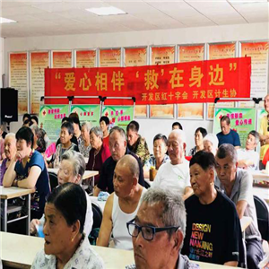随着人们应急救护意识逐渐提高,越来越多人关注急救事业,碰到意外情况时,时间就是生命,急救是否及时、妥善,直接关系到病人的安危和预后。为增强居民健康安全防范意识,提高居民应急救护能力,7月25日上午,天保社区联合开发区红十字会、开发区计生协和悦心居家养老共同开展“爱心相伴 ‘救’在身边”主题讲座。