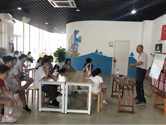 活动中主讲人孙地建老师带领着孩子们了解着诗人眼中的农忙,回顾着十多年前铁心桥地区的种田时光,“头戴草帽、脖子上系着粗布毛巾、挥舞着手中的连札打麦”,看出大家对那些没听过名字也想象不出的劳动工具产生了浓厚的疑惑与兴趣,孙老师用画笔为孩子们一一展示着那些神秘的劳动人民的“好伙伴”。