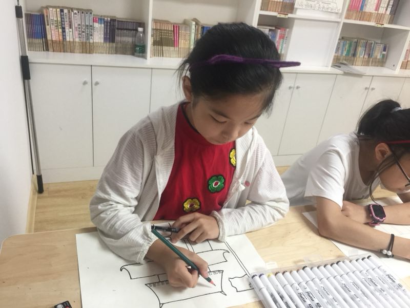 天安门对于孩子们来说是神圣而又庄严的,当知道今天绘画的主题是北京天安门时,他们一改往日嬉皮笑脸的活泼模样,认真聆听老师讲解主题背景及绘画技巧。