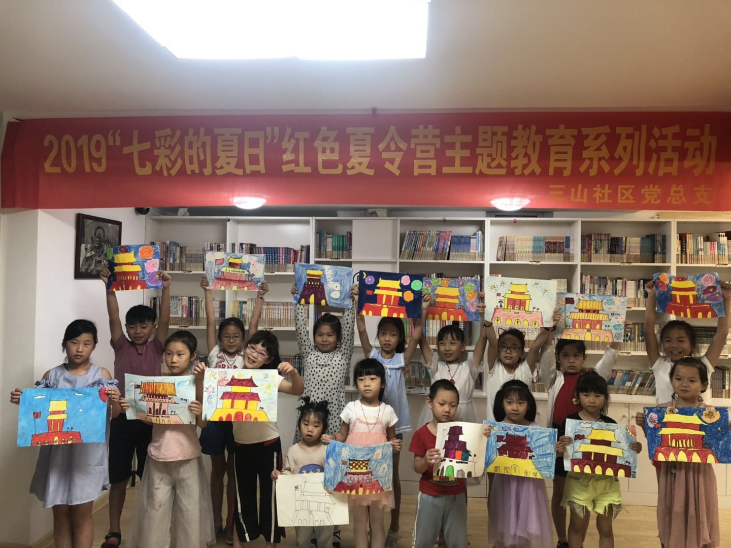 为加强对社区青少年的爱国主义教育,激发他们的爱国情怀,鼓励他们为实现中华民族伟大复兴的“中国梦”而发愤图强,7月16日上午,三山社区党总支携手星宸文化艺术服务中心,在社区阅览室开展了“手绘天安门,心系中国梦”主题绘画活动及红色故事分享活动,共辖区16名少年儿童积极参与。