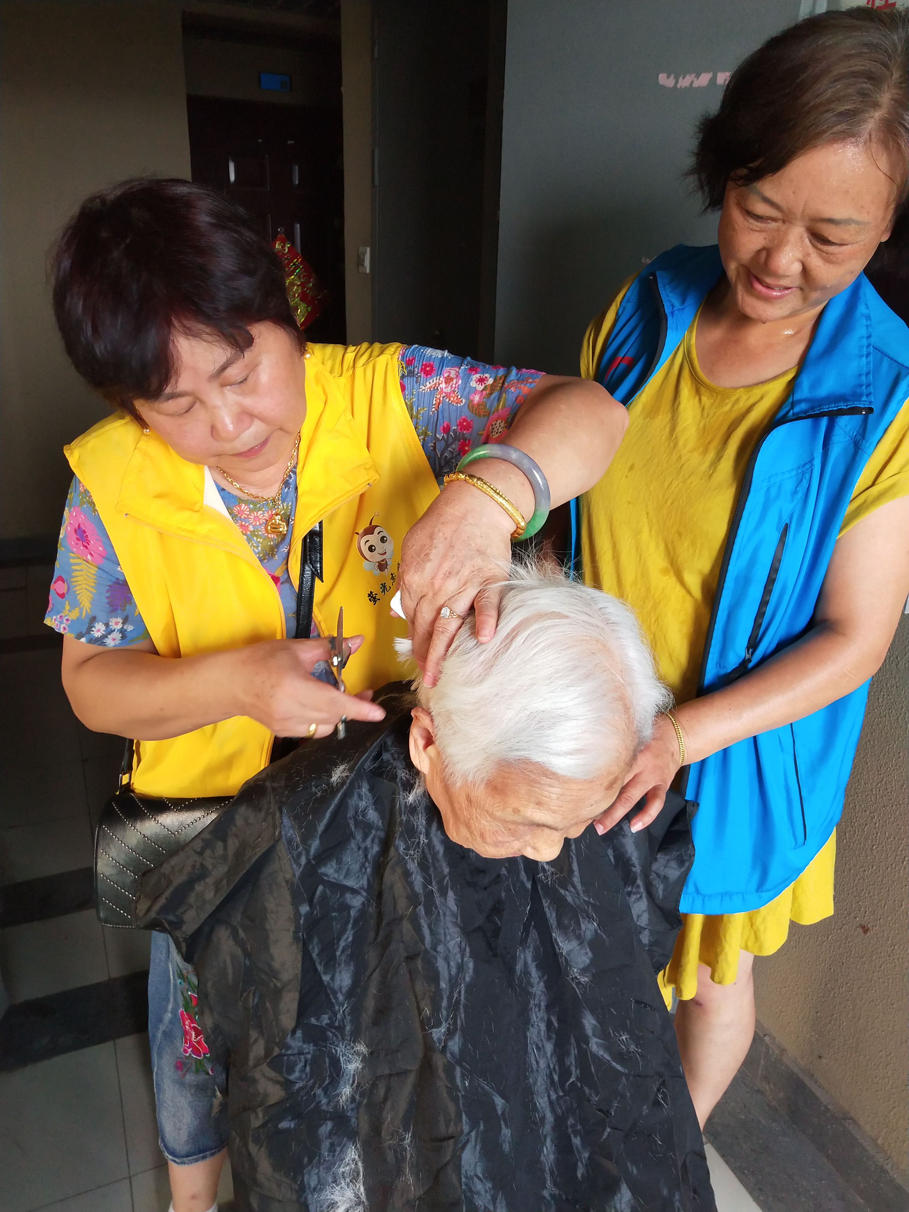 第二天下午,我们如约来到了老人家里帮老人理发。不一会儿,志愿者就按老人的要求把他们的头发打理地干干净净,清清爽爽。临走时老人不停的说,“这么热的天,真的很感谢你们能上门服务,谢谢!”