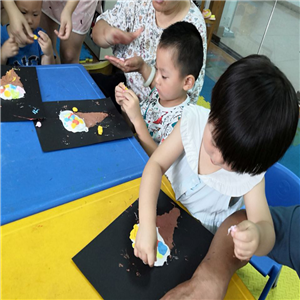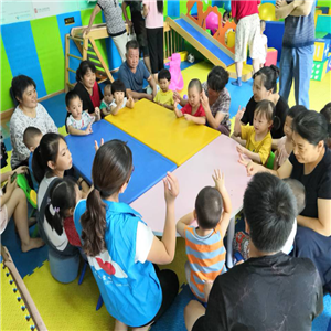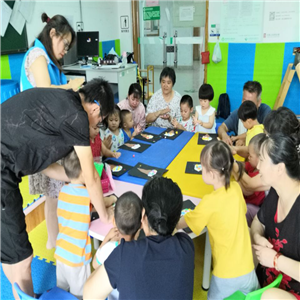 “小手伸出来,小手拍一拍……”,8月8日上午,在快乐的手指游戏声中,为了丰富辖区内幼儿夏日生活,快乐度夏,雨花爱在云端青少年发展中心联合雨花开发区计生协在金叶花园儿童运动馆开展了亲子手工活动。