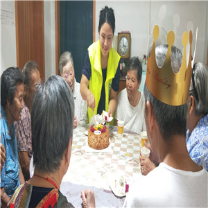 八月是金叶社区冯厚宝爷爷生日,和家居家养老工作人员将附近高龄老人,邀请到冯爷爷家串串门、聚一聚,冯爷爷和老伴今天特别开心,说家里好久没这么热闹了。工作人员准备了特制低糖蛋糕,邀请老人一起给爷爷唱生日歌,大家一起说笑,都在猜爷爷许的什么愿望。志愿者还给每位老人下了一碗荷包蛋长寿面,老人说自己在家就是做不了这么美味、这么好吃的面条。我们在一起聊聊天,唠唠家常。现场徐巧云奶奶主动邀请,下次生日会在她家办,家里太安静了,让我们一起去她家热闹热闹。