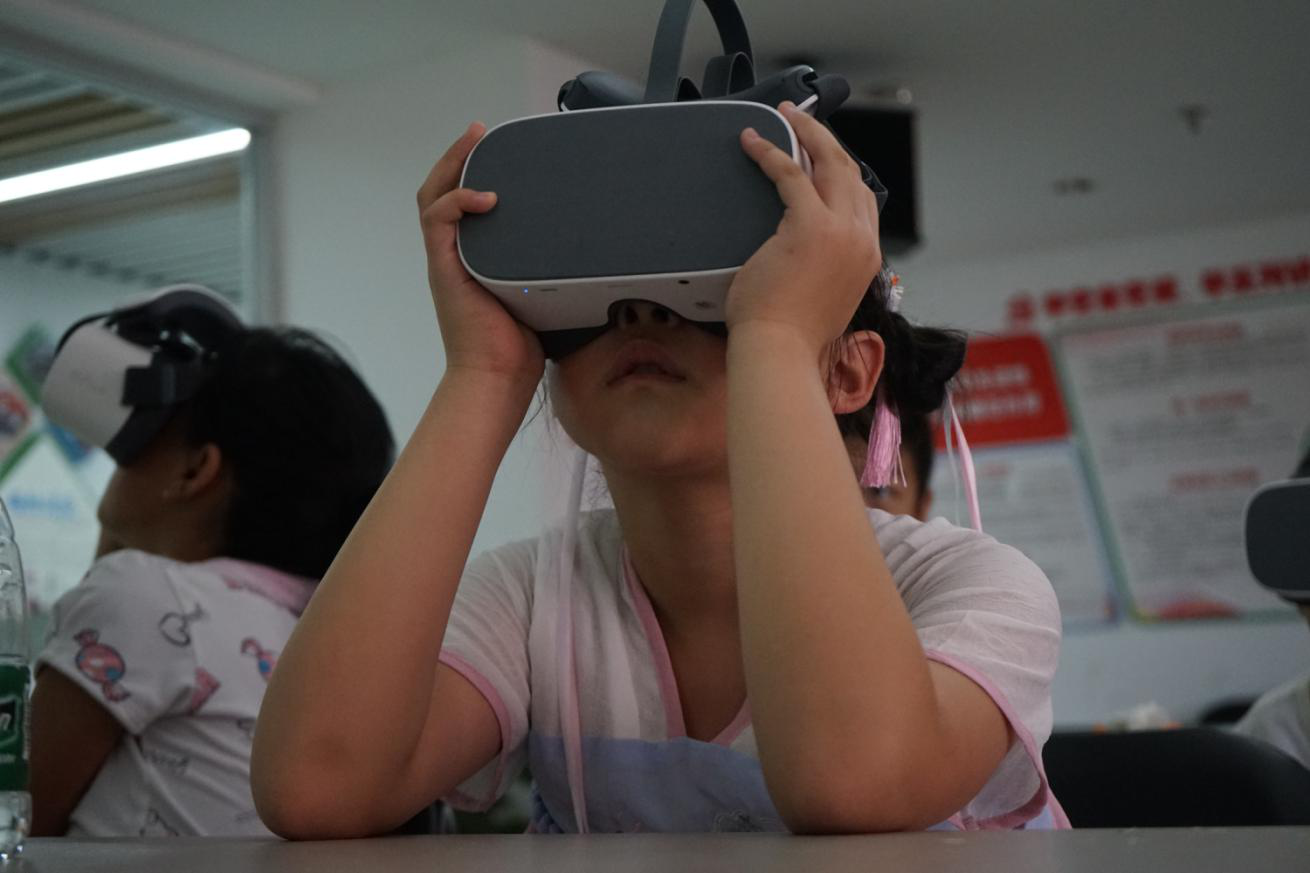 小朋友期待已久的VR灾难逃生体验课堂终于来啦!活动开始,面对陆老师一系列“刁钻”的提问,小朋友丝毫不惧,思路清晰条例明确,回答的有理有据,让人忍不住为其鼓掌。随后,老师拿出VR设备,向小朋友示范如何正确使用VR机器,并帮助小朋友调试设备,选择观看的视频。最后,小朋友轮流使用VR设备,互相帮助,在夏令营结交新朋友。