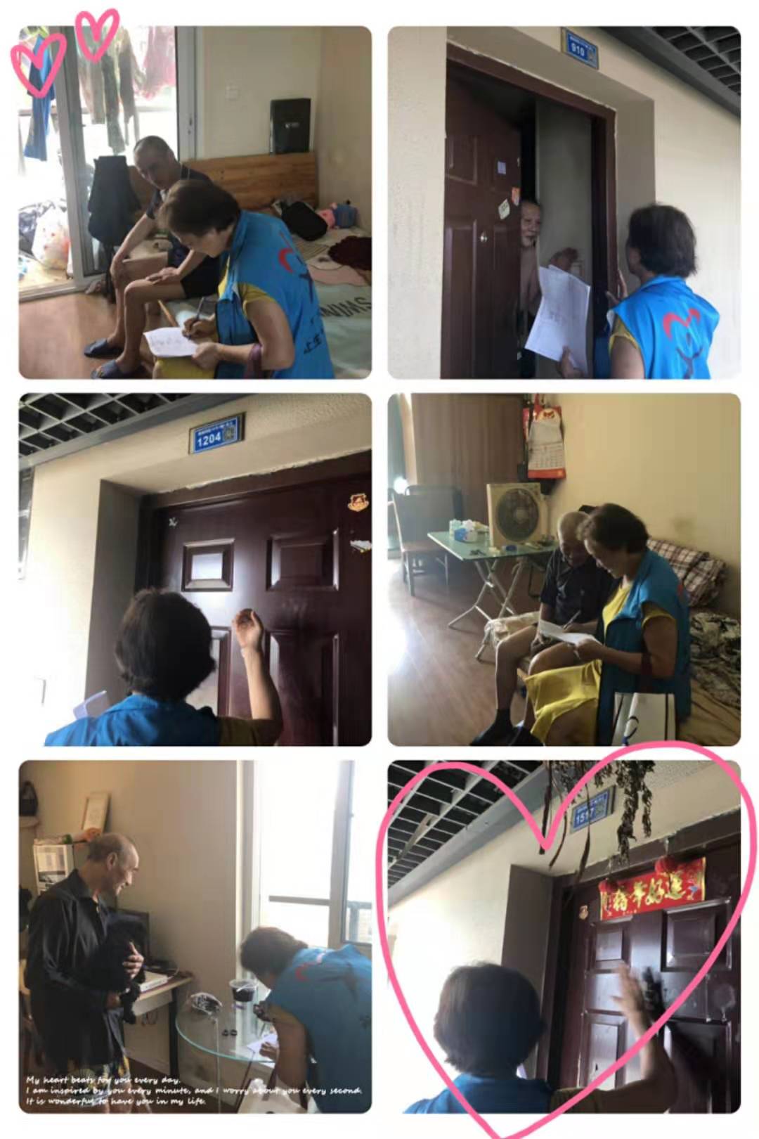 老人对我们这样的服务连声道谢,虽然酷暑难耐,但是有着老人们这份感谢对于我们就是最好的消暑方式。