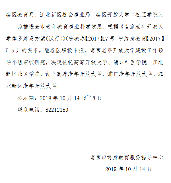 下一篇: 关于2019年南京市“优秀社区教育工作者”“终身学习...