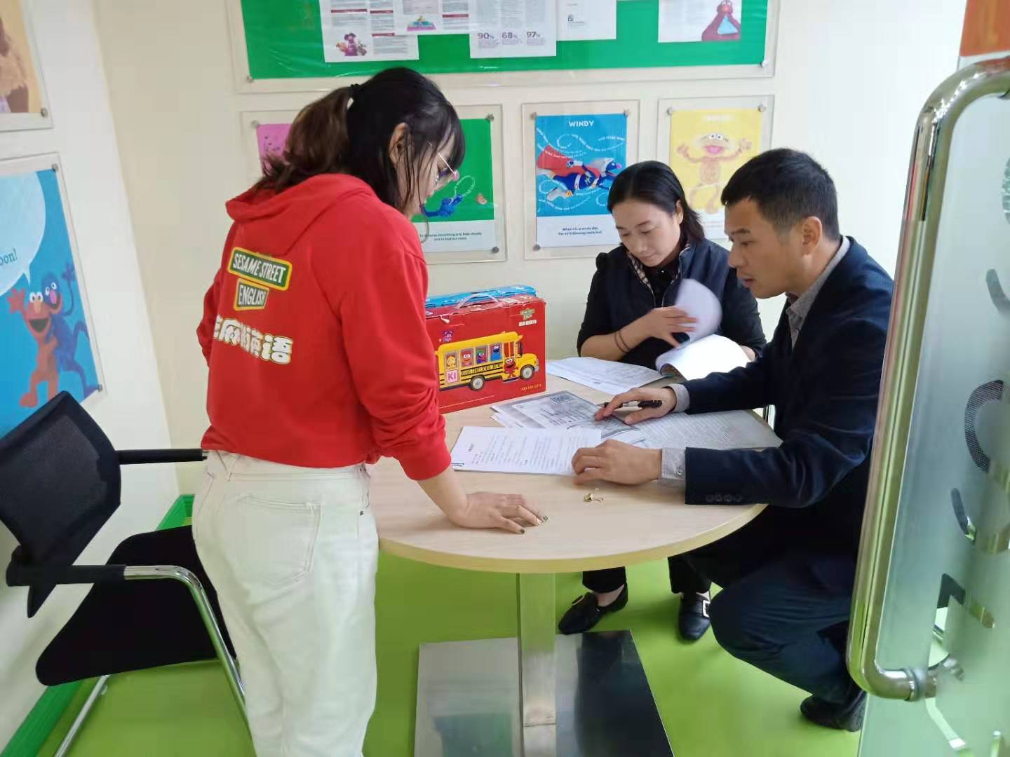 10月22日下午,我社区联合街道对辖区内芝麻街英语、空中英语两家校外培训机构规范办学进行全面检查,主要针对以下两方面:一是现场检查各类安全管理,确保安保力量、健全安全管理员工作台账、消防设施、建立安全工作网络明确责任人,建立安全工作预案;二是检查教学运营情况,严查教师资质、收费规范及教学内容,做到人、账相符。督查各类校外培训等违规办学行为,不断净化教育环境,规范办学行为。