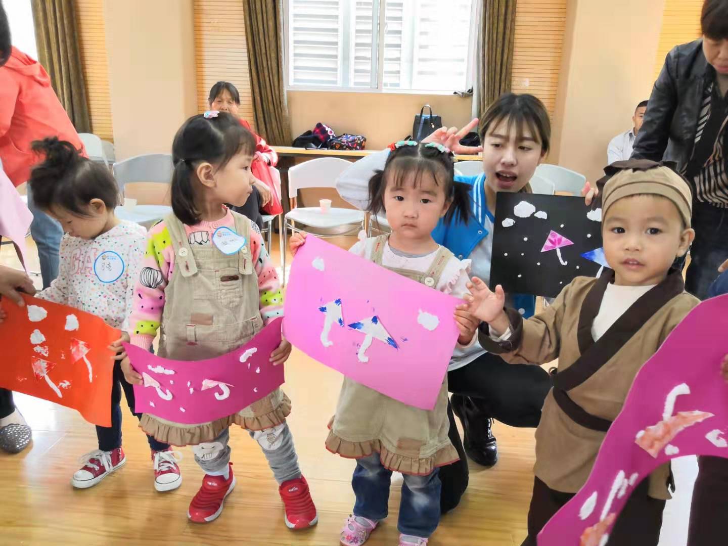 领着小朋友们跟着音乐节奏做出摇摆动作,调动孩子和家长们的参与积极性,营造快乐欢动的活动氛围。最后老师带领大家制作雨天里的小花伞,这是一个非常好玩儿的手工环节哦,通过学习适应画笔和宣纸来晕染花纹。制作一幅美丽的小花伞,过程中锻炼孩子的动手及探索能力,培养宝宝的艺术感知。