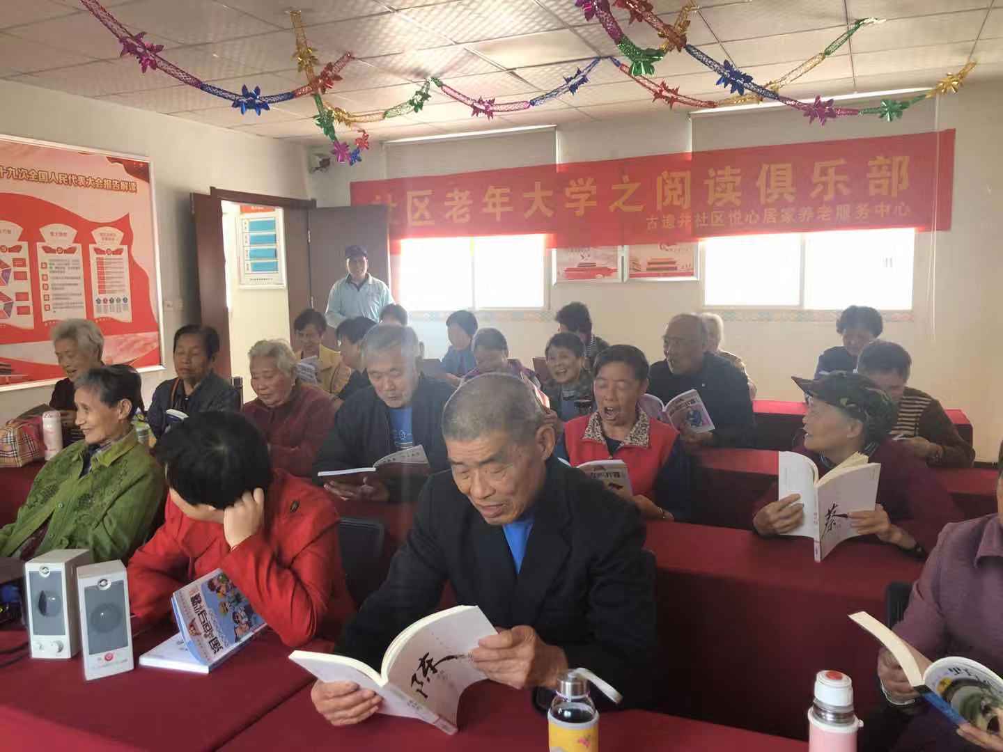 本月读书会活动主要以分享读书心得和美文朗诵。社区的老党员梁和德叔叔分享了《撸起袖子加油干》党员干部读本习,响应习近平总书记的号召,使人倍感温暖,备受鼓舞,其他阅读爱好者分享了《落日红门》《狼孩》《本草纲目》等书籍的感受与体会。
