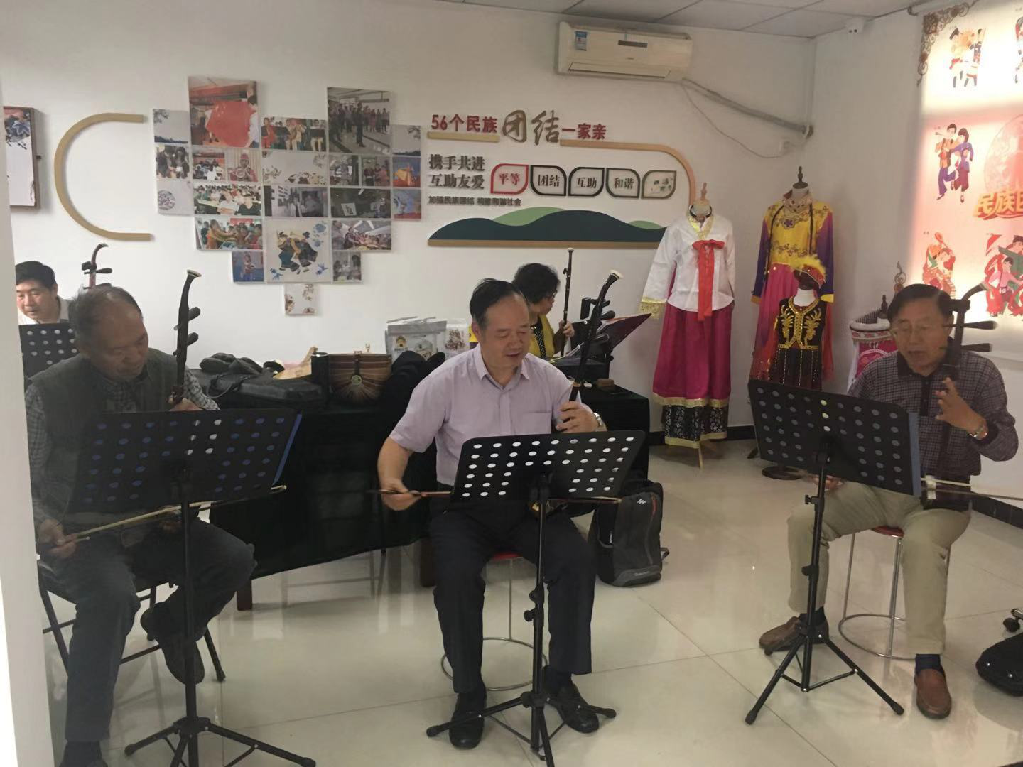 雨花社区民乐队的成员们在国庆节后第一天进行了十月份第一次活动,他们以一首《我和我的祖国》开场,琴声婉转悠扬,歌声美妙,精益求精的他们每唱一次都认真的分析哪里还有不足,讨论后再进行练习,近两个小时的活动,一直兴致高昂,民乐队的叔叔阿姨们就是这样凭着对民乐的一腔热情为自己的业余生活增添了一份乐趣。
