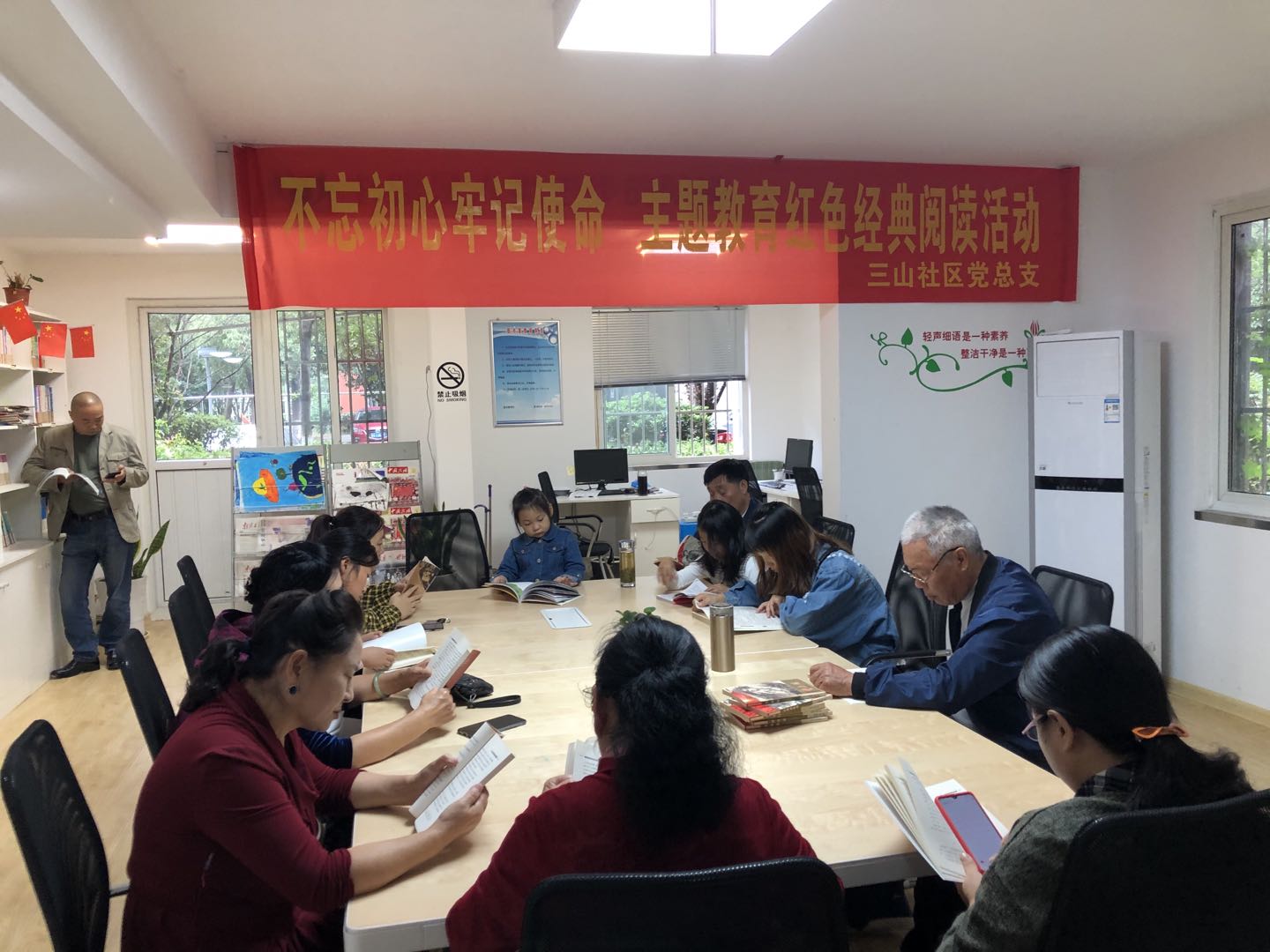 金秋十月,硕果累累,在这个举国欢庆,共同庆祝共和国70华诞的喜庆日子里,三山社区为契合节日氛围,更好的传承和发扬中华民族文化,传颂红色经典、展现人文精神,10月13日上午组织开展了“不忘初心牢记使命”主题教育红色阅读活动,辖区部分青年党员、文化愿者、青少年参加了本次阅读活动。