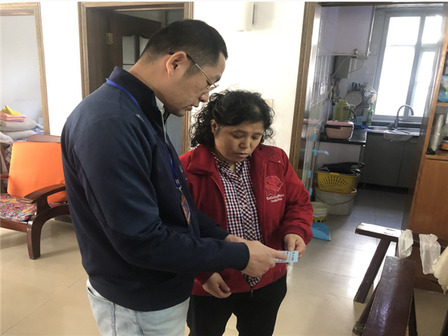 首先我们来到天保社区居民杨定兰家中,看到我们去她家,非常的激动,开发区管委会陈部长询问到:最近身体怎么样,生活让有没有困难的?杨定兰向我们讲述了她家的情况,今年51岁的她操持着家中所有的事情,不仅承担母亲的责任也承担着父亲的重担,在进入这个家庭中,只有婆婆与丈夫两人,丈夫是遗腹子,婆婆独自一人拉扯长大,在与丈夫结婚后生有一女,可是不幸的事情也降落在这个家庭中,在女儿10岁时候丈夫因胃癌去世,家中留下婆婆及母女三人,婆婆于今年也因年事已高也走了,女儿是杨定兰唯一的精神支柱,女儿今年21岁,看着孩子一天天长大,自己也觉得过的不那么苦了,社区领导安慰她说道:经历这么多事情,孩子也长大成人,相信后面的日子会越来越好的,得知杨定兰有头痛毛病,陈部长让社区医院的戴医生看看,现场医生给她测了血压,也告知平日里对颈部的按摩,颈椎的保养做了健康指导。杨定兰说:这么多年感谢党和政府领导的关爱,真的感谢你们陪我一起经历了这么多生活上遇到的困难,陈部长急忙说:以后有事情直接电话给我,今天还特意给你送一张我们的便民服务卡片,上面有我们的联系方式,这是我们应该做的。