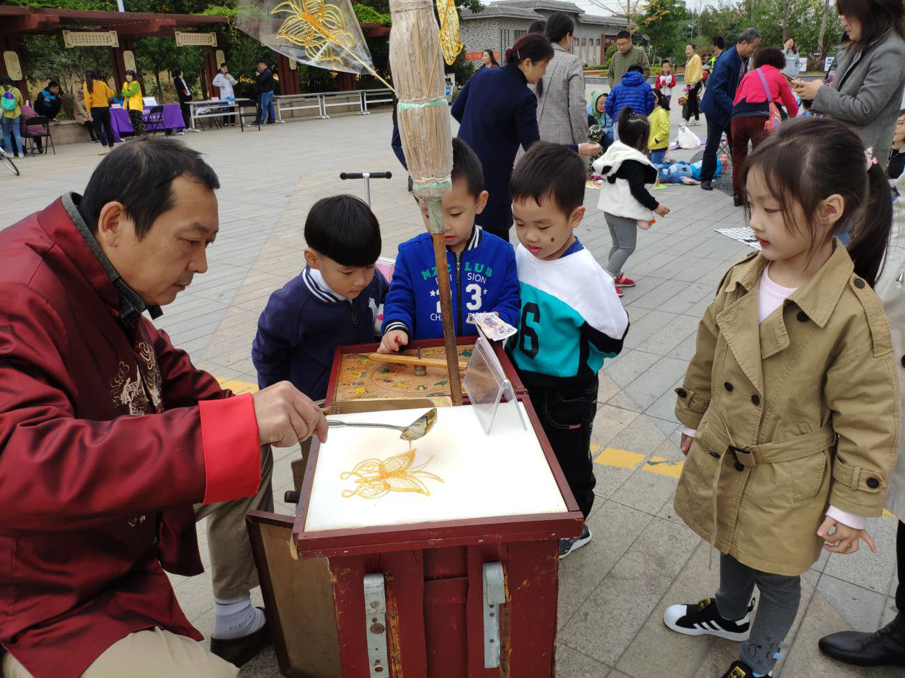 小朋友手拿糖人心满意足的离开,居民朋友对便民服务赞不绝口,家长也表示小朋友得到了很好锻炼,本次农花市集圆满结束。