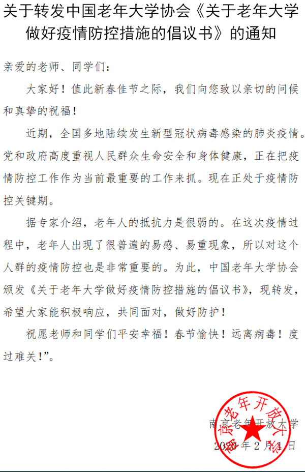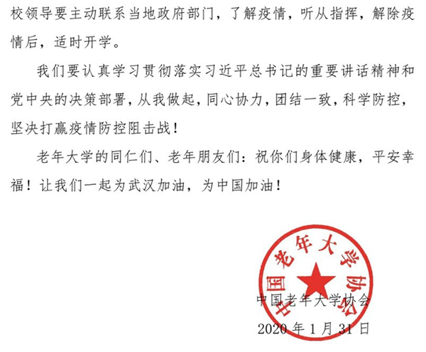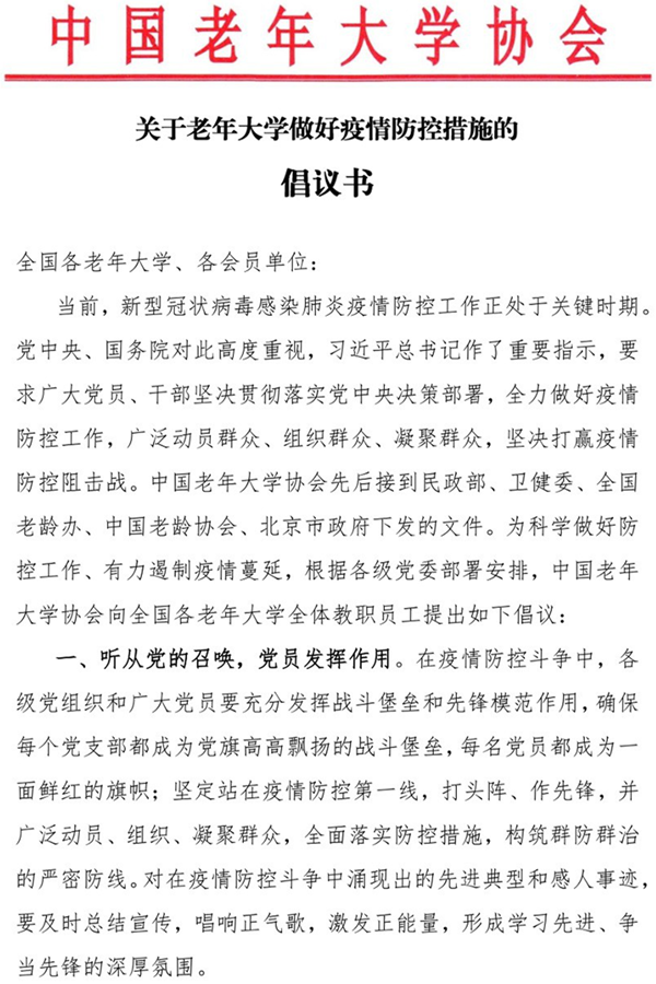 关于转发中国老年大学协会《关于老年大学做好疫情防控措施的倡议书》的通知