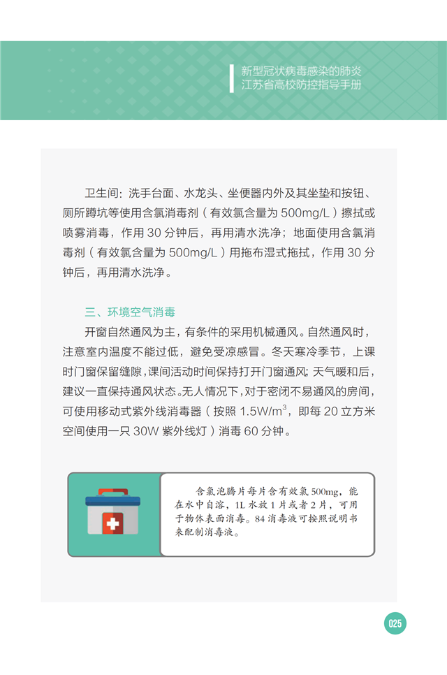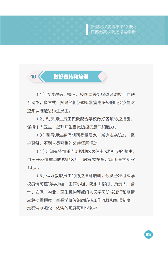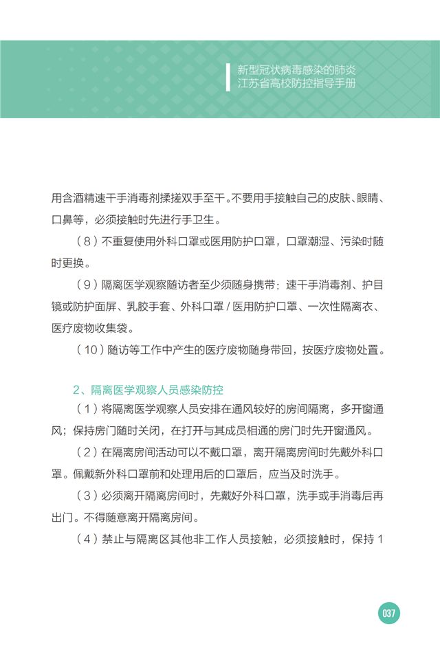 新型冠状病毒感染的肺炎 江苏省高校防控 指导手册(第一版)