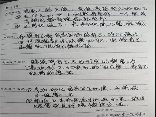 皓宸妈妈有两位宝宝,她不仅要忙碌工作,还要忙碌孩子,但是加入家长学校之后,她积极的组织和参与各项活动。她总是温柔的,微笑着看着她的孩子。从她的文字里,我们可以看出她是一位独立,勇敢,温柔而又坚定的妈妈。有一篇记录,说到皓宸为了搭出自己理想的积木飞机,需要拆开风车制作一个螺旋桨,皓宸妈妈没有用大人的价值观来衡量风车的价值,而是尊重孩子的创造探索精神,这是值得我们学习的,我们家长可以多站在孩子的角度去思考问题。