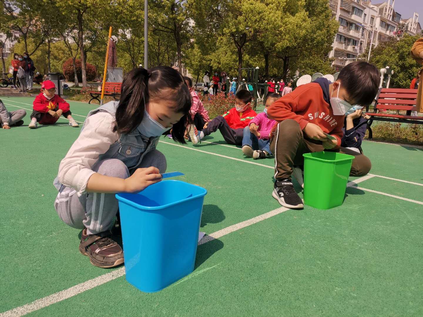 4月24日,福润社区联动益心青少年带领孩子在户外拓展了“垃圾分类大作战”的活动,小朋友们在垃圾分类小游戏中热火朝天,在进行分组后,小队长们带领自己的队员摩拳擦掌,迫不及待的要进行垃圾分类挑战。