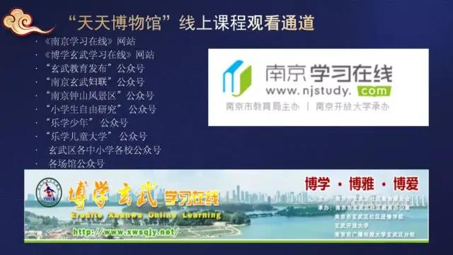 玄武区社区教育办公室坚持在每年中小学放假的第一天举办青少年进社区仪式,使社区教育与学校教育无缝对接。今年,针对疫情,区社区教育办公室在线下研学的基础上,研发了线上的云端研学课程。为充分发挥南京各大博物馆场馆相对集中在玄武区域的区位优势,今年的研学主题定位为“云端研学玄武——天天博物馆线上课程”。暑期将有百名辖区中小学生作为小讲解员参与课程的策划和录制,中小学生可以通过南京学习在线官网(www.njstudy.com)在电脑、手机上实时在线共享博物馆课程。
