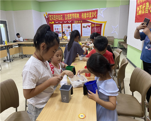 2020年8月17日嘉业社区联合南京军地开展垃圾分类宣传活动,活动大家观看视频了解垃圾带来的危害?为什么要垃圾分类?如何垃圾分类?以“趣味抢卡片”“垃圾分类真有趣”游戏互动形式为居民讲解垃圾对人类和地球的危害及垃圾分类知识和减少垃圾产生的多种方法,让垃圾变废为宝。并通过辨别不同颜色的垃圾桶加深垃圾分类的印象,让居民更近距离的了解垃圾分类的方法与好处。
