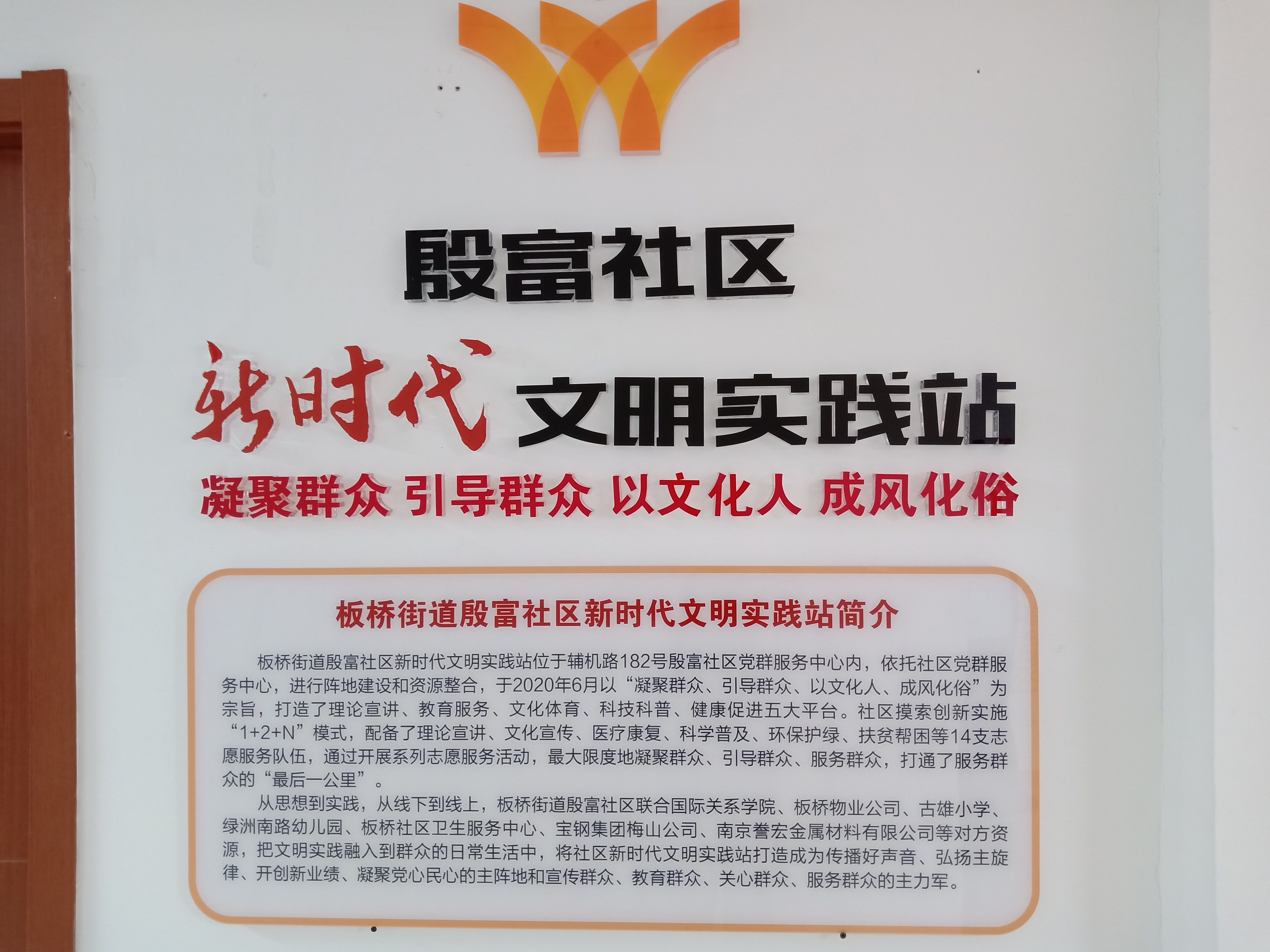 新时代文明实践站的志愿者先带领大家参观板桥街道殷富社区新时代文明实践站,向大家介绍文明实践站的一些功能,知道五大平台红殷领航团、红殷苗圃园、红殷演艺圈、红殷科普站、红殷舒悦会的作用,明白社区具有理论宣讲、文化宣传、医疗康复、环保护绿、扶贫帮困等14支志愿服务队伍,通过开展系列志愿服务活动更好地服务辖区居民。